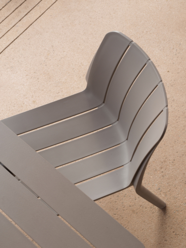 Планки, плавные закругленные линии и экологичность - вот отличительные черты нового элегантного стула Tiberina. Модель может быть выполнена из регенерированного пластика (цвет терра) или из пластика, пригодного для вторичной переработки.