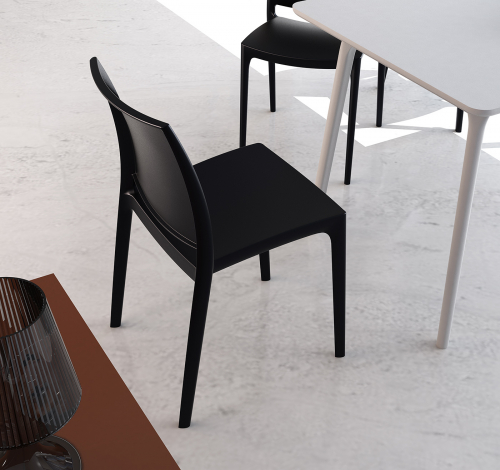 Черный цвет стульев подчеркивает данные особенности, делая их более явными.