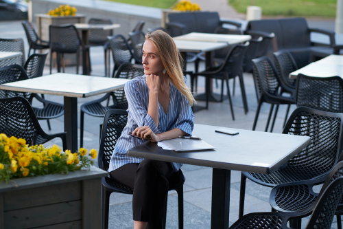 Пластиковые стулья серии Air с перфорированными сиденьем и спинкой станут отличным выбором для обстановки фуд-кортов, кафе, ресторанов и баров. Благодаря использованию высококачественных материалов они долгое время не теряют своего привлекательного внешнего вида, даже несмотря на активную эксплуатацию. Отсутствие металлического каркаса и устойчивость к ультрафиолетовому воздействию обеспечивает использование пластиковых стульев Air на открытых площадках.