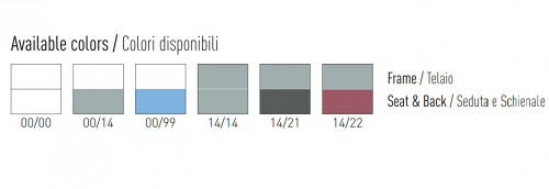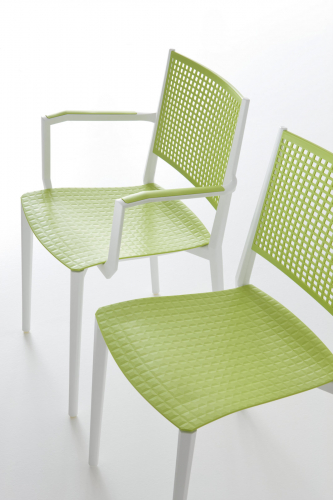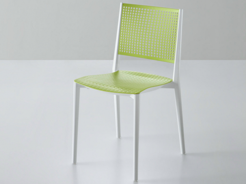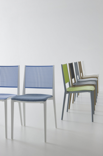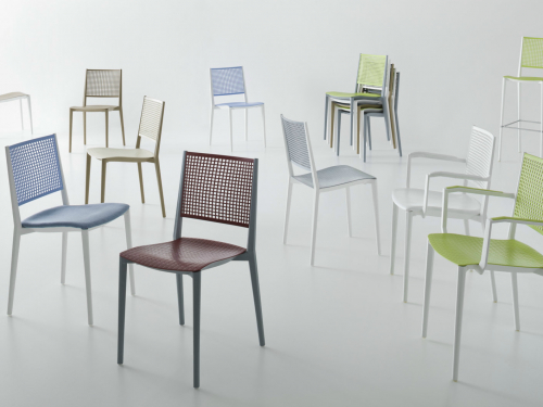 Мягкая и гибкая спинка, а также большое сиденье, отличающееся инновационной текстурой, обеспечивают комфорт во время сидения. Стулья доступны в одноцветных и двухцветных сочетаниях и подходят как для внутренних, так и для наружных пространств.