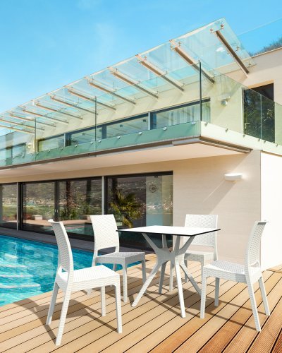 Пластиковый плетеный стул Florida изготовлен из прочного погодостойкого пластика, армированного стекловолокном. Благодаря отсутствию металлического каркаса и устойчивости к ультрафиолетовому воздействию плетеные стулья из пластика Florida можно использовать в том числе и на открытых площадках.