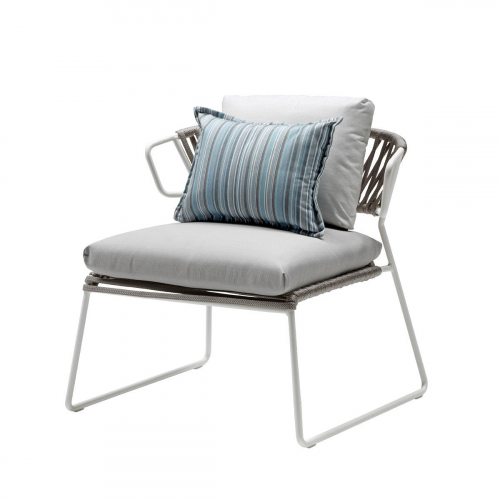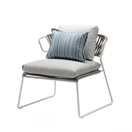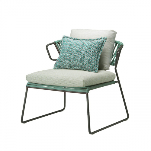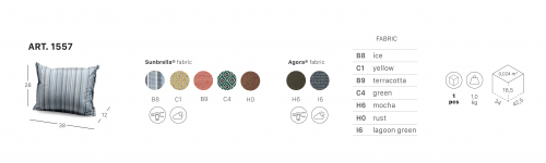 Мягкая декоративная подушка для кресла или дивана Lisa может быть выполнена из ткани sunbrella или из ткани Agora. В обоих случаях ткань обладает водоотталкивающими свойствами и стойкостью к появлению пятен и плесени.