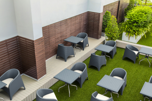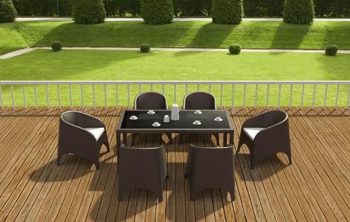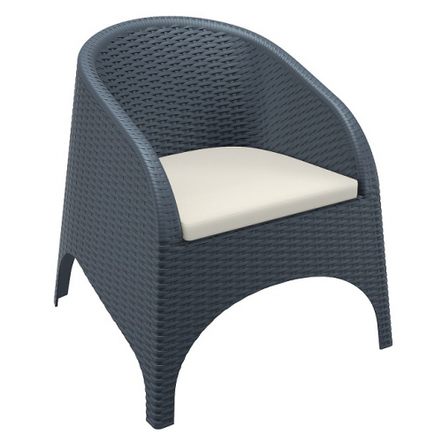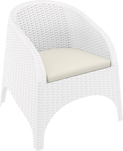 Подушка на сиденье для кресла Aruba толщиной 5 см покрыта полиэстеровой тканью и заканчивается кантом. Обеспечивает дополнительное удобство и комфорт сидящему. Подушка изготовлена из синтетической ткани, произведенной из полиэфирных волокон, хорошо сохраняет форму, устойчива к воздействию тепла и света.