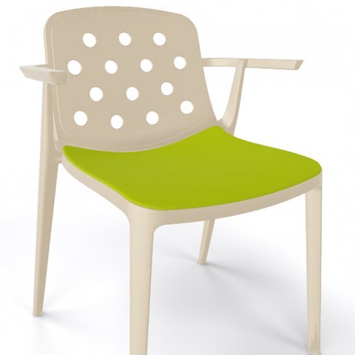 Подушка на сиденье для коллекция стульев и кресел Isidora - результат эстетических и функциональных деталей, которые характеризуют их конструкцию. Стулья и кресла легкие и штабелируемые, но в то же время прочные, поэтому идеально подходят для открытых пространств.