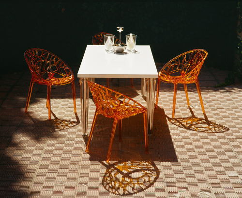 Пластиковые кресла серии Crystal станут отличным выбором для обстановки фуд-кортов, кафе, ресторанов и баров. Благодаря устойчивости к ультрафиолетовому воздействию и отсутствию металлического каркаса кресла из пластика Crystal можно использовать в том числе и на открытых площадках.