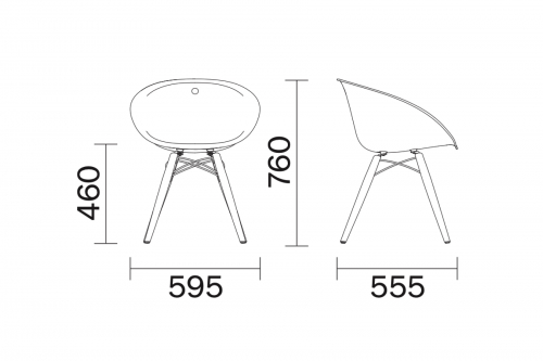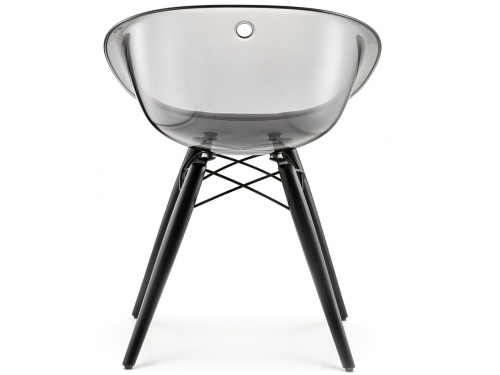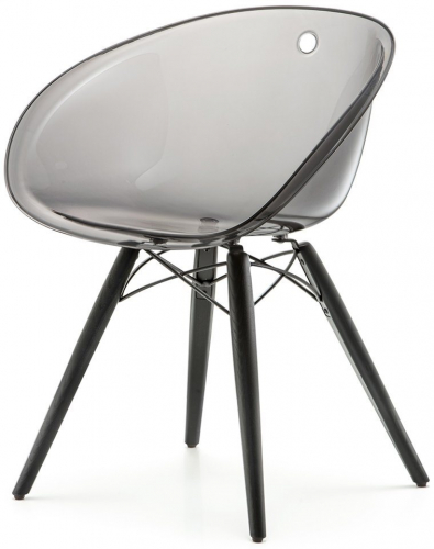 Gliss имеет уютную и эргономичную форму, вдохновленную культовыми креслами пятидесятых, с характерным отверстием в корпусе. Коллекция отличается комфортом и функциональностью, благодаря изогнутым подлокотникам, обеспечивающим чувство защищенности. Корпус кресла выполнен из поликарбоната, а каркас с 4-мя ножками из дерева и металлической опорой, что обеспечивает оригинальность и долгий срок службы.