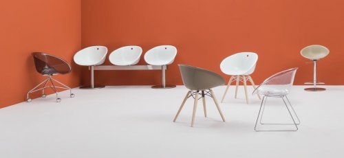 Коллекция Gliss имеет комфортную и эргономичную форму, которая черпает вдохновение из культовых кресел пятидесятых, и характеризуется отличительным элементом - отверстием в спинке. Коллекция выделяется своим удобством и функциональностью, которые обеспечивают изогнутые подлокотники, обхватывающие тело, и простотой в использовании.