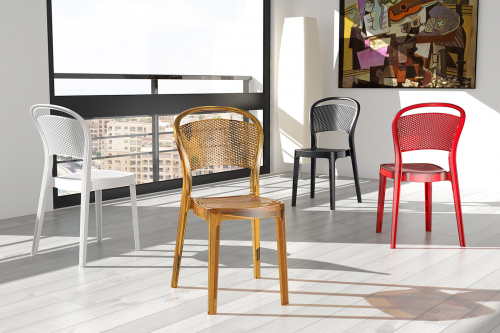 Пластиковые стулья серии Bee с перфорированными сиденьем и спинкой в виде пчелиных сот станут отличным выбором для обстановки фуд-кортов, кафе, ресторанов и баров. Использование высококачественных материалов гарантирует сохранность привлекательного внешнего вида в течение долгого времени, даже несмотря на активную эксплуатацию. Благодаря отсутствию металлического каркаса и устойчивости к ультрафиолетовому воздействию пластиковые стулья Bee можно использовать в том числе и на открытых площадках.