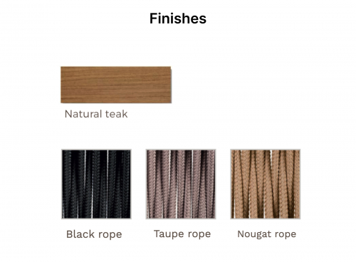 Команда студии POINT хотела создать изделие с сильным средиземноморским вкусом. Благодаря своей скульптурной форме, точности плетения, особенно в изгибе подлокотников и совершенству отделки ручной работы, Khai обладает большой индивидуальностью. Плетение, доступное в цветах нуга, серо-коричневый и черный, гармонично сочетается с элементами из тикового дерева (добываемого из экологически чистых лесов), что делает кресло очень привлекательным и красивым.