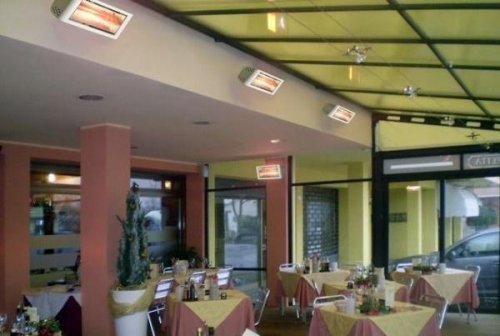 Важно, чтобы область покрытия обогревалась максимально равномерно. Для этого устанавливайте обогреватели под углом в 45° и с наложением рабочих областей. Более того, вертикальное отопление с потолка не рекомендуется, так как будет обогреваться только верхняя часть тела, что будет вызывать дискомфорт. В гостиничном секторе следует помнить, что количество излучаемого тепла прямо пропорционально длительности пребывания клиента в гостинице. Более того, количество теплового излучения будет больше в местах с высоким уровнем влажности.