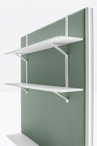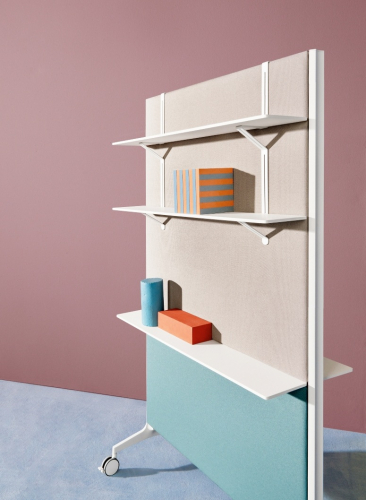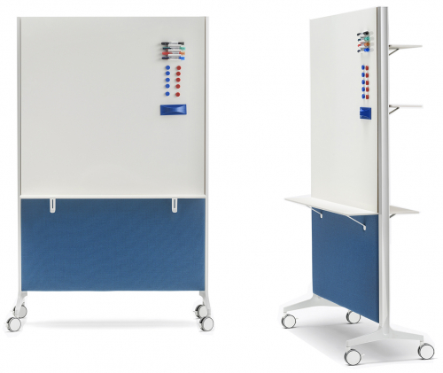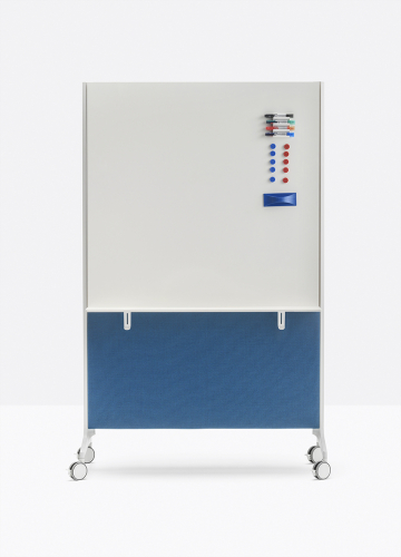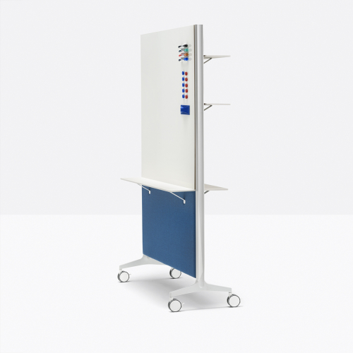 Модель представлена с каркасом из двух литых алюминиевых оснований и двух опор из экструдированного алюминия, покрытых с обеих сторон звукопоглощающими панелями. Имеется возможность дополнить изделие аксессуарами на любую из его сторон, такими как полки или крючки для одежды. Перегородка также может быть использована в качестве держателя для телевизора. Выпускается как с колесиками, так и без них. Возможно исполнение перегородки с магнитной доской.