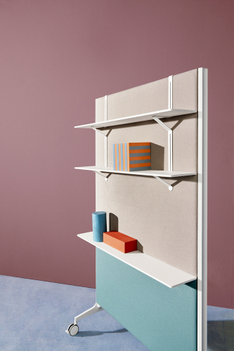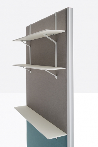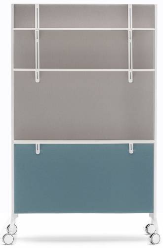 Модель представлена с каркасом из двух литых алюминиевых оснований и двух опор из экструдированного алюминия, покрытых с обеих сторон звукопоглощающими панелями. Имеется возможность дополнить изделие аксессуарами на любую из его сторон, такими как полки или крючки для одежды. Перегородка также может быть использована в качестве держателя для телевизора. Выпускается как с колесиками, так и без них. Возможно исполнение перегородки с магнитной доской.