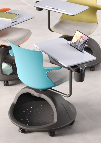 С коллекцией стульев Tema организация учебного пространства становится простой и быстрой. Переход от традиционных уроков в очной форме к групповым или командным занятиям происходит за несколько минут, а Ваши собственные инструменты (портфели, устройства и т. д.) всегда с вами.