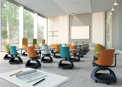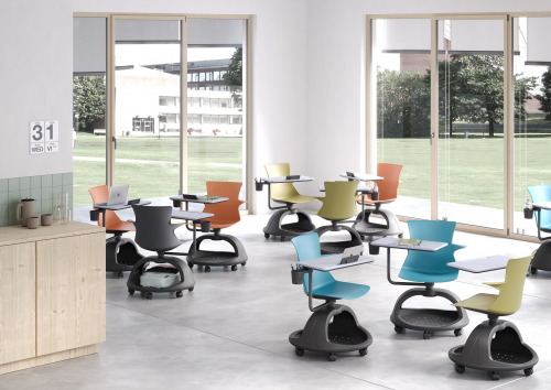 Инновационные стулья Tema, правильно расположенные в пространстве, способствуют творческому видению и управлению командной работой. В отличие от традиционного обучения в классе, в этом решении основное внимание уделяется поощрению дебатов: ученик оказывается в центре, с его желанием планировать, представлять и предлагать решения для будущего.