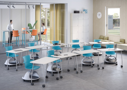 Инновационные стулья Tema, правильно расположенные в пространстве, способствуют творческому видению и управлению командной работой. В отличие от традиционного обучения в классе, в этом решении основное внимание уделяется поощрению дебатов: ученик оказывается в центре, с его желанием планировать, представлять и предлагать решения для будущего.