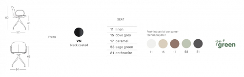 Mentha - это современное удобное и уютное сиденье, как следует из названия, доступное в различных вариантах исполнения каркаса и отделок. Выбор материала так же важен, как и форма: в данной версии стула применяется сертифицированный переработанный пластик, прогрессивно развивающийся материал, который все чаще используется компанией.
