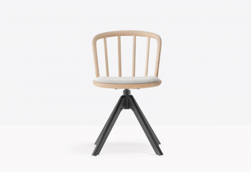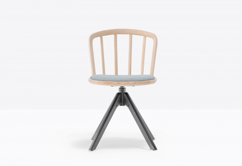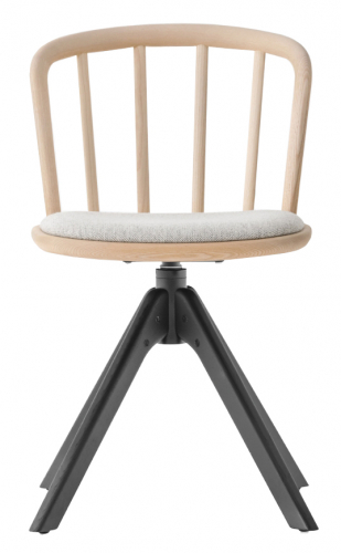Деревянный стул Nym с обивкой сиденья обладает интересным дизайном и богатым функционалом. Он представлен с каркасом в виде 4 ножек, соединяющихся вверху, и корпусом, верхняя часть которого образует арку, плавное переходящую в сиденье. Поворотный механизм дает возможность вращаться на 360 градусов, что делает его очень удобным решением для офисов или залов ожидания. Стильная и современная модель придаст дружелюбный и гостеприимный характер любому интерьеру за счет теплоты древесины.