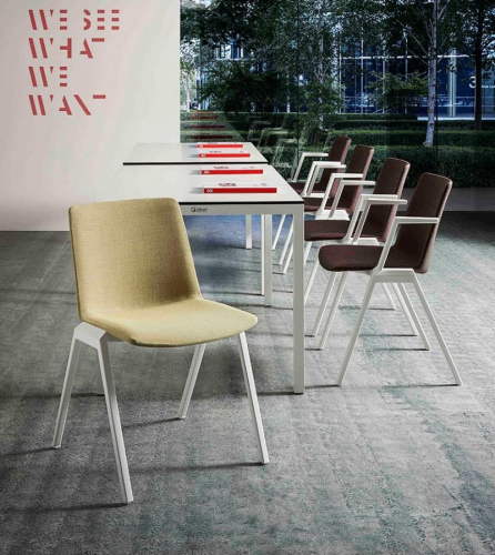 Стулья и кресла Jubel доступны в широкой привлекательной цветовой гамме обивок корпуса. Уникальная форма спинки и четкие линии дизайна выделяют Jubel своим комфортом, позволяя ему стать звездой гостиничного или офисного оборудования.
