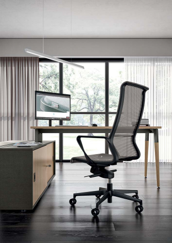 Минималистичный дизайн излучает сильный и самобытный характер, который привлекает внимание своей современной сущностью. Традиционная форма представительского кресла переосмыслена в более характерном стиле, а сетчатое покрытие придает ему динамичности.