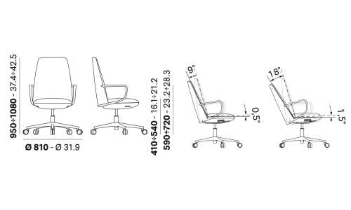 Кресло руководителя Elinor воплощает в себе свои собственные подходы и взгляды на рабочую среду будущего: оно динамичное и спроектировано с линейным, но в то же время отличительным визуальным стилем. Активируемый весом механизм синхронного наклона, интегрированный в мягкое сиденье, позволяет регулировать наклон самостоятельно в зависимости от веса тела сидящего, обеспечивая наиболее удобное положение спины. Удобство и ощущение комфорта, благодаря мягким сиденью и спинке, являются сильными сторонами этой модели. Легкие, тонкие, прочные подлокотники из алюминия определяют основание спинки своей плавной линией.
