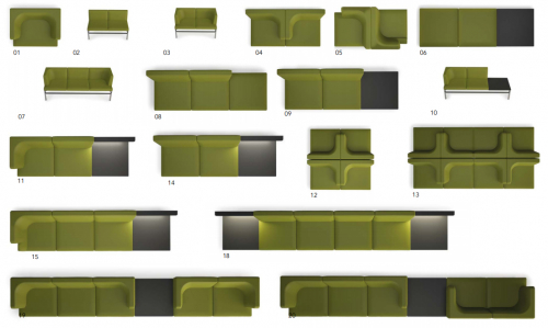 С самых первых изображений Ponte обнаруживает свою многогранную способность изменять структуру, сохраняя при этом ярко узнаваемый стиль. Он выходит за рамки стандартного дивана и превращается в настоящую мягкую систему сидений, которую можно комбинировать по-разному: прямые, изогнутые, круглые, одно- или двусторонние.