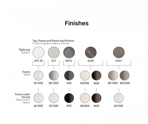 Цена на сайте указана за модель со столешницей CFP_BI и отделкой каркаса BI100E. Для уточнения всех возможных вариантов материала и цвета данного изделия обращайтесь к нашим менеджерам.