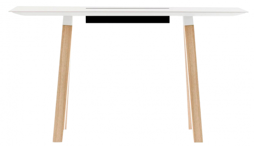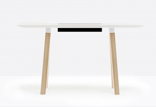 Барный стол Arki-Table Wood с деревянными ножками и тонкой столешницей из компакт-ламината HPL – это отличная модель для обустройства помещений сферы Contract или домашнего интерьера. Интересный дизайн стола заключается в форме его ножек, за счет чего он будет привлекать внимание окружающих и превосходно сочетаться с разнообразной мебелью. Преимущественной особенностью стола является столешница, оснащённая отверстием для протяжки кабелей, которое делает модель очень удобной и функциональной.