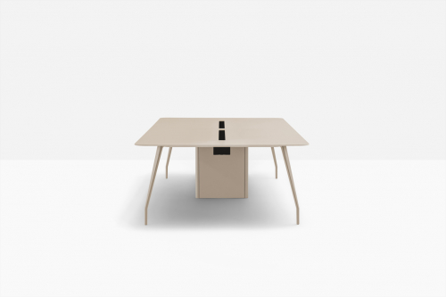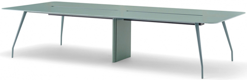 Rizz Workstation - это система двух-, четырех- или восьмиместных рабочих станций. Структурная прочность, скрытая за чистыми линиями, отличает этот стол, который объединяет ножки с алюминиевой опорной рамой, скрытой под столешницей, чтобы обеспечить эстетическую легкость и максимальную устойчивость. Для более длительных совещаний или рабочих столов центральная прямоугольная стальная колонна с закругленными краями обеспечивает устойчивость, одновременно служа для управления кабелями. Литые алюминиевые ножки имеют треугольную секцию, которая обращена наружу и сужается в круглую форму, элегантно опираясь на пол. Система управления кабелями, встроенная в столешницу, предназначена для размещения звукопоглощающих панелей. Стол также может быть дополнен системой светодиодного освещения с центральной мостовой конструкцией. Верхняя секция может служить держателем для растений или небольших предметов.