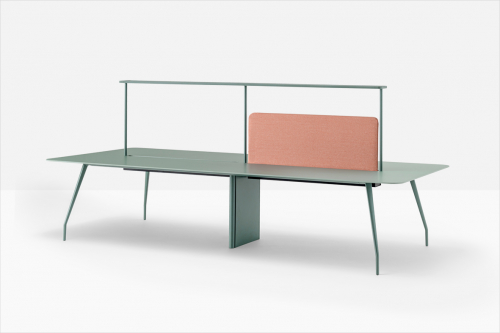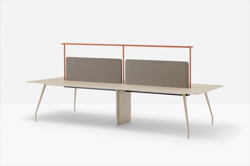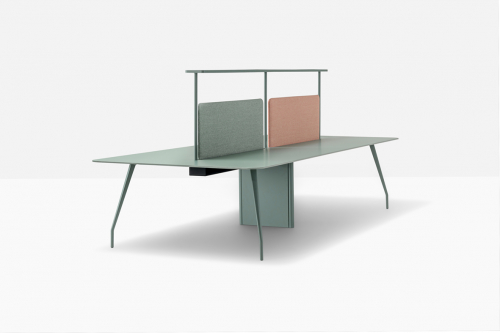 Rizz Workstation - это система двух-, четырех- или восьмиместных рабочих станций. Структурная прочность, скрытая за чистыми линиями, отличает этот стол, который объединяет ножки с алюминиевой опорной рамой, скрытой под столешницей, чтобы обеспечить эстетическую легкость и максимальную устойчивость. Для более длительных совещаний или рабочих столов центральная прямоугольная стальная колонна с закругленными краями обеспечивает устойчивость, одновременно служа для управления кабелями. Литые алюминиевые ножки имеют треугольную секцию, которая обращена наружу и сужается в круглую форму, элегантно опираясь на пол. Система управления кабелями, встроенная в столешницу, предназначена для размещения звукопоглощающих панелей. Стол также может быть дополнен системой светодиодного освещения с центральной мостовой конструкцией. Верхняя секция может служить держателем для растений или небольших предметов.
