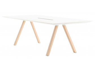 Стол с каналом для протяжки проводов Toa СС60 обладает легким и минималистичным дизайном. Комбинация декоративных элементов и технико-индустриального стиля делает продукт функциональным и уникальным. Основной особенностью являются конические ножки, которые тоньше у основания и расширяются к Т-образному элементу, поддерживающему столешницу. Toa доступен в широком диапазоне отделок каркаса и столешницы, что делает его универсальным по отношению к персонализации под различные интерьеры помещений.