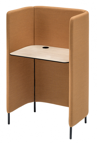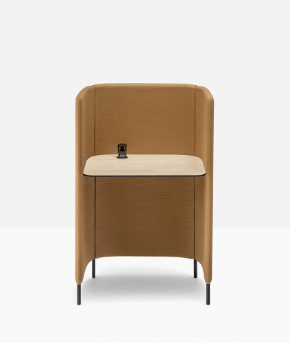 Buddy Hub Desk – это функциональный и эффективный стол, где пользователи смогут сосредоточиться и изолироваться. Он оснащен звукопоглощающей панелью по периметру, которая охватывает столешницу из компакт-ламината HPL, создавая своего рода закрытую нишу, обеспечивающую акустическую и визуальную уединенность. Панель опирается на тонкую легкую раму, которая приподнимает изделие над землей и улучшает общий внешний вид, повышая функциональность, облегчая отчистку и техническое обслуживание. Рабочее место, спроектированное как уютное пространство для неформальной работы или звонков как в положении стоя, так и сидя.