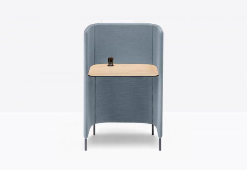 Buddy Hub Desk – это функциональный и эффективный стол, где пользователи смогут сосредоточиться и изолироваться. Он оснащен звукопоглощающей панелью по периметру, которая охватывает столешницу из компакт-ламината HPL, создавая своего рода закрытую нишу, обеспечивающую акустическую и визуальную уединенность. Панель опирается на тонкую легкую раму, которая приподнимает изделие над землей и улучшает общий внешний вид, повышая функциональность, облегчая отчистку и техническое обслуживание. Рабочее место, спроектированное как уютное пространство для неформальной работы или звонков как в положении стоя, так и сидя.