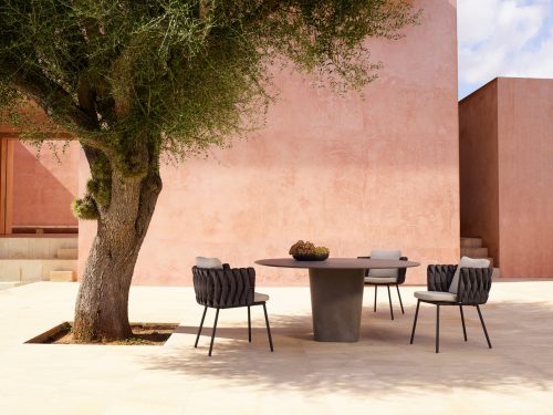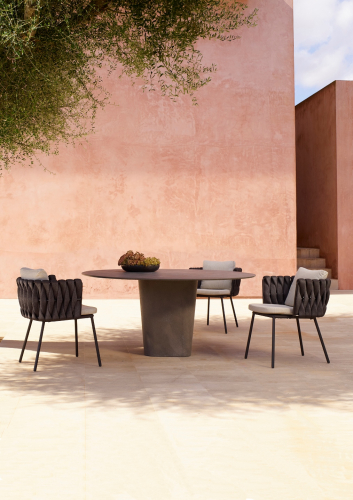 Элегантная коллекция столов Tao - это урок идеально сбалансированных контрастов: смелые скульптурные пьедесталы и тонкие столешницы, приятные на ощупь. Итальянский дизайнер Моника Армани использовала облегченный бетон, чтобы придать этому обеденному столу элегантную солидность. Обеденный стол имеет центральную опору, которая поддерживает круглую столешницу с тонкой фрезеровкой. Столы Tao выполнены в теплых тонах, что делает их ярким украшением любой обстановки.