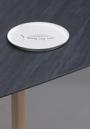 Идея возникновения коллекции Squid исходит из необходимости создания универсальных столов, адаптируемых к различным средам и доступных в различных формах и размерах. Squid - это стол со столешницей из компакт-ламината HPL, доступный в прямоугольной или шестиугольной версии.
