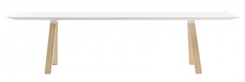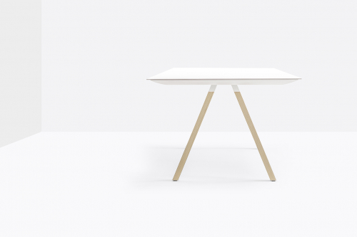Прямоугольный стол Arki-Table Wood с деревянными ножками и тонкой столешницей из компакт-ламината HPL – это отличная модель для обустройства помещений сферы Contract или домашнего интерьера. Интересный дизайн стола заключается в форме его ножек, за счет чего он будет привлекать внимание окружающих и превосходно сочетаться с разнообразной мебелью.