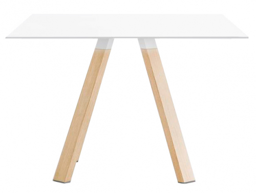 Стол Arki-Table Wood отличается строгой линейной конструкцией, но в то же время он универсален и задуман для использования в самых разных помещениях. Модель с деревянными ножками, образующими в проекции треугольник, и квадратной столешницей из компакт-ламината HPL делают изделие долговечным и надежным. Стол отлично впишется в интерьеры коммерческого характера, но также подойдет для обустройства домашних пространств.