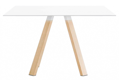 Стол Arki-Table Wood отличается строгой линейной конструкцией, но в то же время он универсален и задуман для использования в самых разных помещениях. Модель с деревянными ножками, образующими в проекции треугольник, и квадратной столешницей из компакт-ламината HPL делают изделие долговечным и надежным. Стол отлично впишется в интерьеры коммерческого характера, но также подойдет для обустройства домашних пространств.