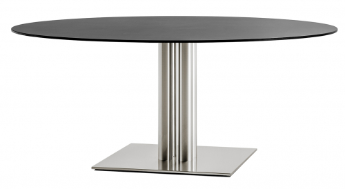 Круглый стол Inox Table с квадратным основанием и колонной из нержавеющей стали, а также столешницей большого размера из компакт-ламината HPL. Модель характеризуется как устойчивый и надежный стол за счет материалов изготовления. Благодаря простой геометрии и плавным линиям он идеально впишется в помещения разных стилевых направлений. Стол Inox Table станет отличным выбором для обустройства офисов, ресторанов, баров и кафе.