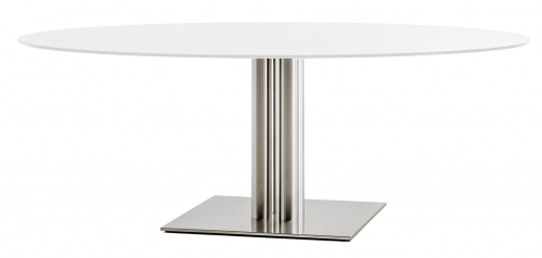 Круглый стол Inox Table с квадратным основанием и колонной из нержавеющей стали, а также столешницей большого размера из компакт-ламината HPL. Модель характеризуется как устойчивый и надежный стол за счет материалов изготовления. Благодаря простой геометрии и плавным линиям он идеально впишется в помещения разных стилевых направлений. Стол Inox Table станет отличным выбором для обустройства офисов, ресторанов, баров и кафе.