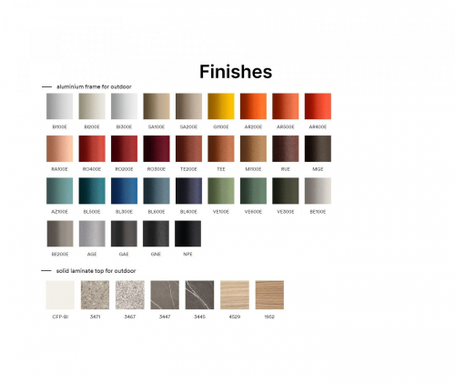 Toa Outdoor – это уличные столы, обладающие легким и минималистичным дизайном. Комбинация декоративных элементов и технико-индустриального стиля делает продукт функциональным и уникальным. Главной особенностью являются конические ножки, которые тоньше у основания и расширяются к Т-образному элементу, поддерживающему столешницу. Toa доступен в широком диапазоне отделок каркаса и столешницы, что делает его универсальным по отношению к персонализации под различные стили открытых пространств и интерьеры помещений.