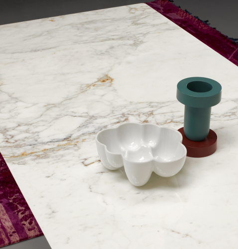 Идея возникновения коллекции Squid исходит из необходимости создания универсальных столов, адаптируемых к различным средам и доступных в различных формах и размерах. Squid M - это стол со столешницей из мрамора, доступный в прямоугольной или шестиугольной версии.