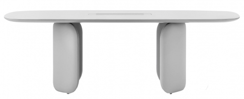 Стол Elinor CCO с его мягкими и изогнутыми линиями образует изысканный, но в то же время современный образ. Основание состоит из двух фигурных элементов одинаковых размеров, изготовленных из жесткого пенополиуретана и обитых материалами различных категорий на выбор. Столешница прямоугольной формы с каналом для протяжки проводов поддерживается стальной конструкцией, которая скрывается поддоном округлой формы из качественного и надежного материла МДФ. Красивая и необычная модель превосходно украсит помещения сферы Contract, но так же отлично впишется в домашние интерьеры. Столы данной линейки имеют возможность модификации в части основания. Опоры можно расположить несколькими способами, что позволит получить разные вариации модели стола. Так, например, ассиметричное расположение придаст изделию некую легкость и в то же время устойчивость благодаря сохранению пропорций пространства.