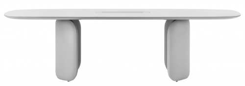 Стол Elinor CC60 с его мягкими и изогнутыми линиями образует изысканный, но в то же время современный образ. Основание состоит из двух фигурных элементов одинаковых размеров, изготовленных из жесткого пенополиуретана и обитых материалами различных категорий на выбор. Столешница прямоугольной формы с каналом для протяжки проводов поддерживается стальной конструкцией, которая скрывается поддоном округлой формы из качественного и надежного материла МДФ. Красивая и необычная модель превосходно украсит помещения сферы Contract, но так же отлично впишется в домашние интерьеры. Столы данной линейки имеют возможность модификации в части основания. Опоры можно расположить несколькими способами, что позволит получить разные вариации модели стола. Так, например, ассиметричное расположение придаст изделию некую легкость и в то же время устойчивость благодаря сохранению пропорций пространства.