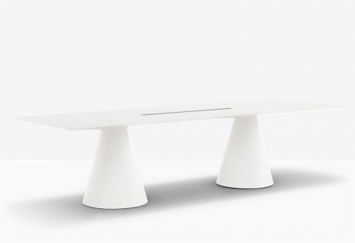Прямоугольный стол Ikon Table CC с двумя конусообразными основаниями и каналом для протяжки кабелей – это модель, обладающая элегантным дизайном и большим функционалом. Сочетание красоты и функциональности делают изделие шикарным вариантом для обустройства офисных помещений, фудкортов, залов ожидания или конференц-залов. За счет большой столешницы за столом может разместиться большая компания для важных переговор или приятного времяпрепровождения за обедом. А канал для протяжки кабелей позволяет подключать устройства к сети непосредственно за столом, не отвлекаясь от своих дел.