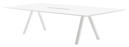 Прямоугольный стол Arki-Table CC Compact обладает линейным характером и строгими с конструктивной точки зрения линиями, но в то же время универсален и предназначен для различных применений. Его аккуратный внешний вид подойдет к любому стилю помещения, идеально сочетаясь с существующей мебелью. Преимущественной особенностью стола является столешница, оснащённая отверстием для протяжки кабелей, которое делает модель очень удобной и функциональной. Модель легко адаптируется под различные проекты – от офисных помещений до домашнего интерьера.
