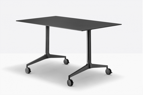 Ypsilon Tilting – это стол в складном и штабелируемом исполнении, которое делает его по-настоящему универсальным. Изделие может стать рабочим местом, столом для совещаний или подставкой для использования в коворкинг-пространствах последнего поколения. Запатентованный механизм позволяет переворачивать крышку и перемещать ее из горизонтального положения в вертикальное с помощью двух хорошо продуманных фиксирующих ручек красного цвета.
