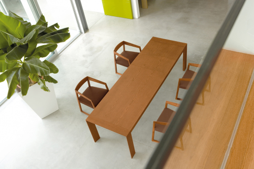 Раскладной стол Surface подойдет для офиса и дома. Разработка такого стола возникла из идеи найти идеальную связь между архитектурой и дизайнерской сферой. Он идеален для совещательных комнат или для приема большого количества гостей. Ножки стола сужаются кверху, создавая ощущение легкости форм и сохраняя при этом прочность и устойчивость. Алюминиевые направляющие позволяют легко выдвигать дополнительные секции стола.