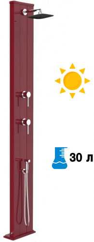 Принцип работы максимально прост, что делает солнечный душ популярным атрибутом пляжных курортов. Вода, хранящаяся в корпусе душа, нагревается за счет солнца. Нагретая вода смешивается с холодной водой из источника постоянного водоснабжения (или из садового шланга). При помощи смесителя возможна регулировка потока горячей и холодной воды до температуры комфорта.