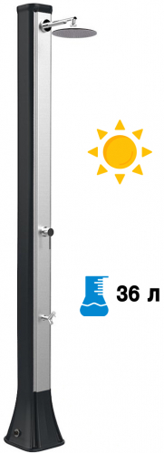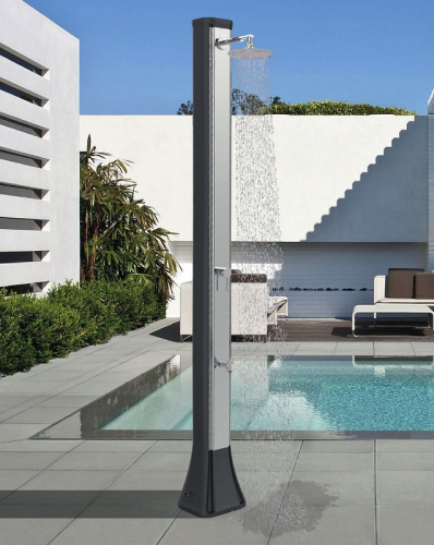 Принцип работы максимально прост, что делает солнечный душ популярным атрибутом пляжных курортов. Вода, хранящаяся в корпусе душа, нагревается за счет солнца. Нагретая вода смешивается с холодной водой из источника постоянного водоснабжения (или из садового шланга). При помощи смесителя возможна регулировка потока горячей и холодной воды до температуры комфорта.