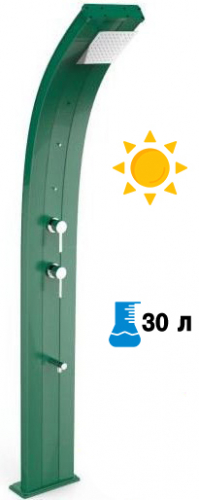 Принцип работы максимально прост, что делает солнечный душ популярным атрибутом пляжных курортов. Вода, хранящаяся в корпусе душа, нагревается за счет солнца. Нагретая вода смешивается с холодной водой из источника постоянного водоснабжения (или из садового шланга). При помощи смесителя возможна регулировка потока горячей и холодной воды до температуры комфорта.